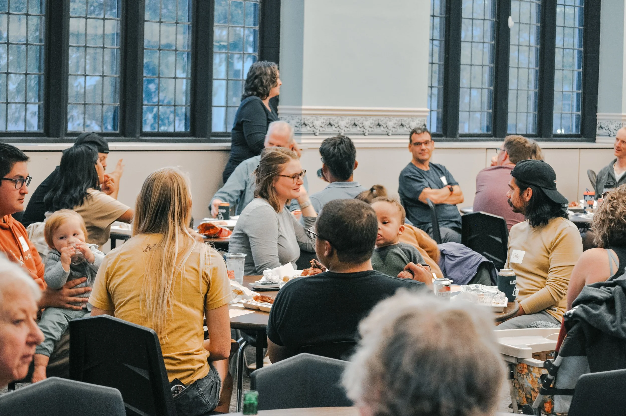 Our location allows us to be active members of the downtown community. We believe that, as a church, we should work toward getting to know our neighbors and what challenges they face so that we can walk alongside them in mutually supportive ways. Learn more about our community partners, free community dinners, and connection to community resources.
